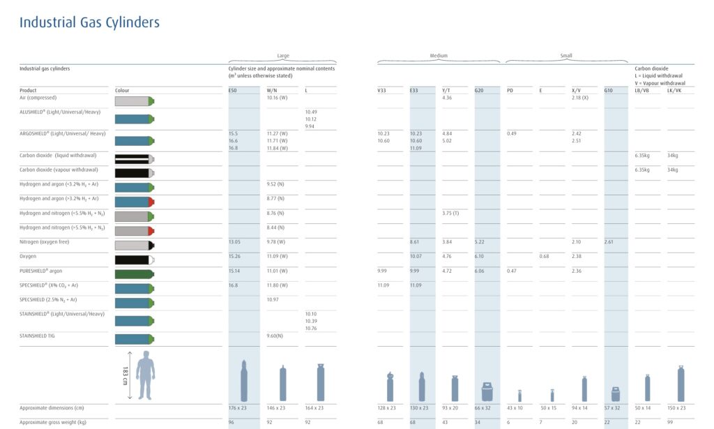 - Argon: Ideal for TIG welding mild steel, stainless, and aluminium metals, and MIG welding of aluminium.